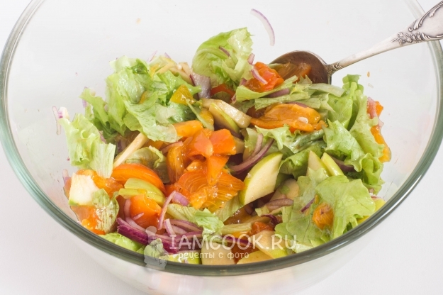 Аккуратно перемешайте салат, стараясь не сильно давить продукты.