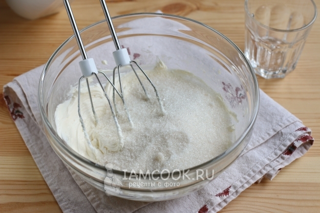 Всыпаем сахар, соль и продолжаем взбивать еще минуты три.