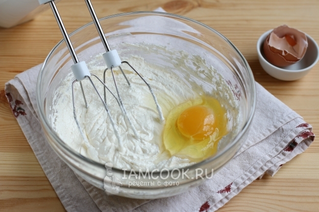 Затем добавляем куриное яйцо и взбиваем до объединения ингредиентов.