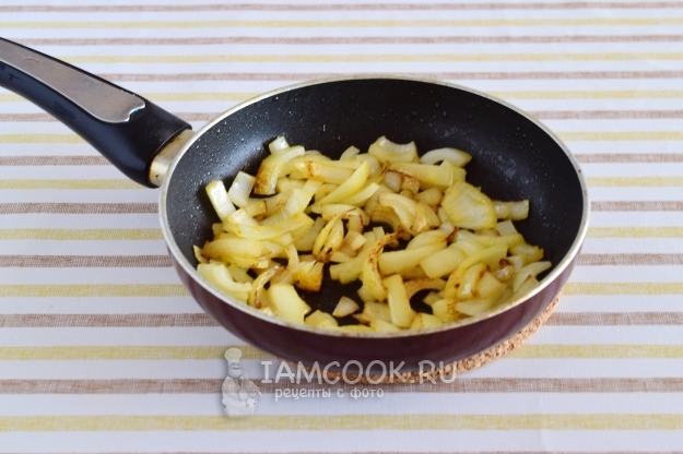 Переложим морковь из сковороды в миску, и в том же масле обжарим лук 3-5 минут.