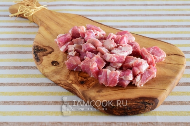 Свинину нарежем небольшими кусочками.