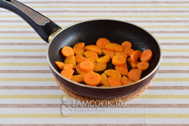 В сковороде разогреем растительное масло и обжарим сначала морковь, минут 5-7.
