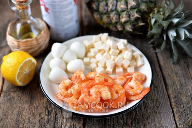 Если Новый год вы планируете встретить с любимым человеком, то можно раскошелиться и приготовить шикарный салат, по вкусу и внешнему виду. Ваша половинка точно его оценит и останется в восторге. Праздничный салат с креветками в ананасе отлично подойдет под шампанское, вино и многие крепкие напитки.
