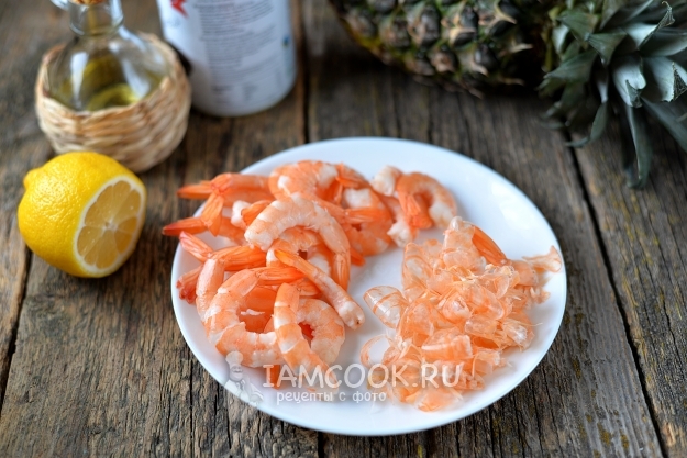 Креветок очистите от панциря, хвостик можно оставить для красоты. Не забудьте удалить кишечник.