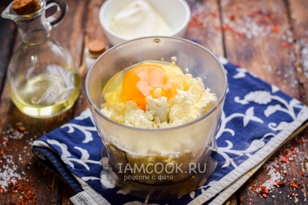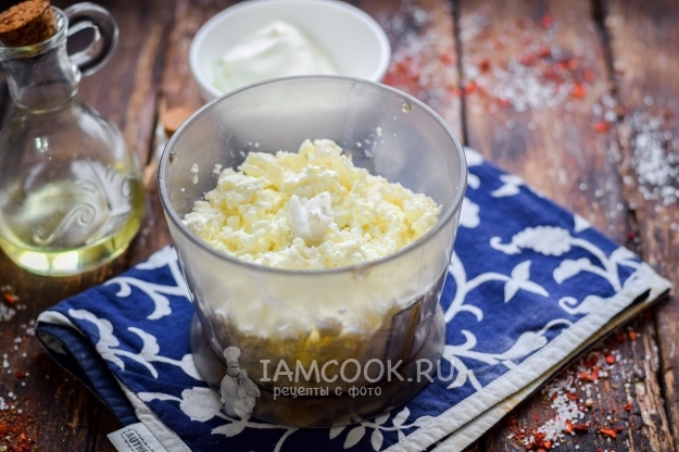 Переложить сразу всю порцию творога в чашу кухонного блендера.