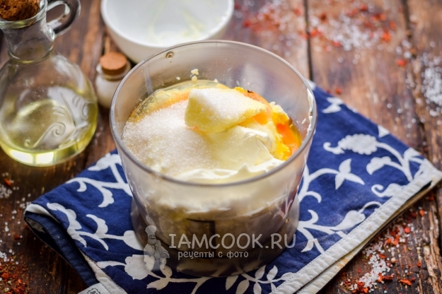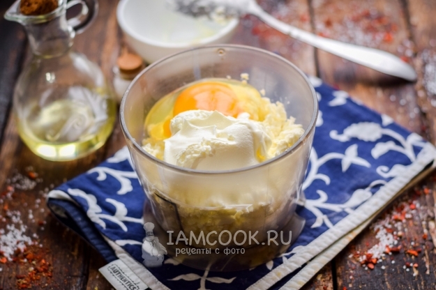 Ввести в чашу блендера сметану, можно добавить густой йогурт вместо сметаны.