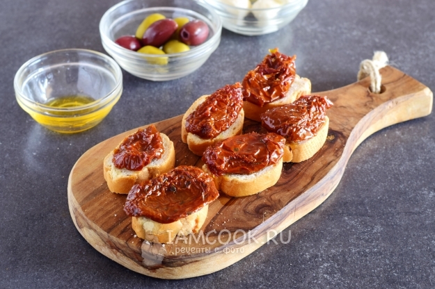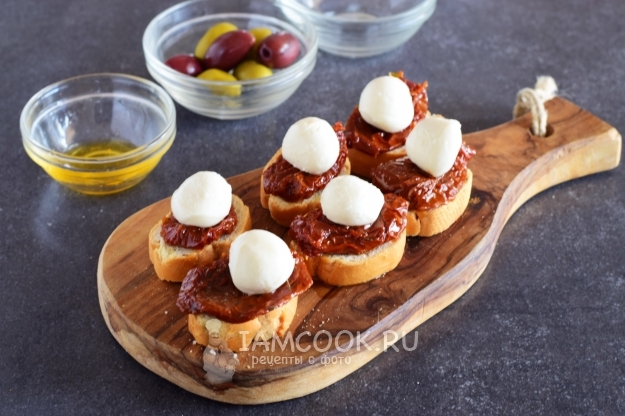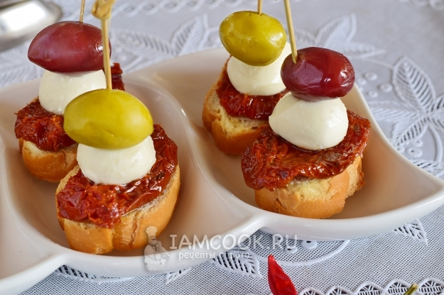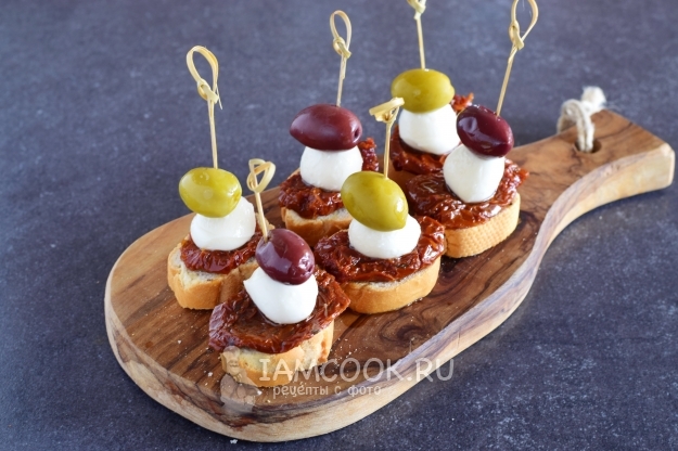 Бутерброды с вялеными томатами, моцареллой и оливками готовы!
