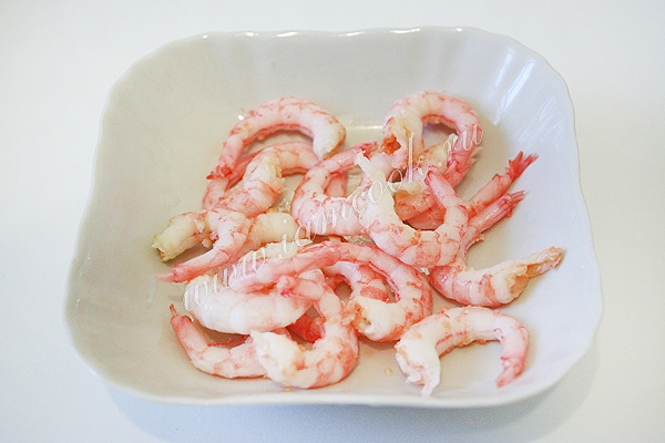 Достаньте креветки. Очистите их.