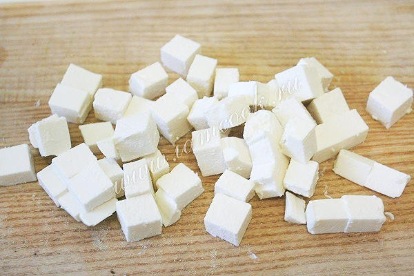 Сыр нарежьте небольшими кубиками.