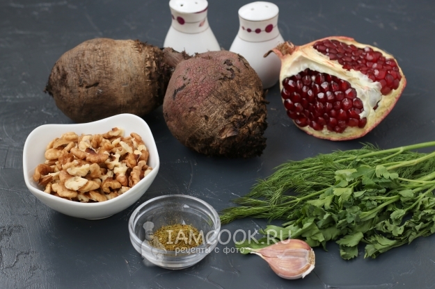 Украсить пхали из свеклы по-грузински можно гранатовыми зёрнами или грецкими орехами. Подать закуску к столу.