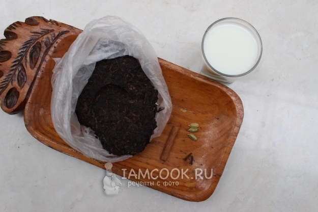 Для приготовления потребуется чай пуэр, небольшая палочка корицы, кардамон, гвоздика. Если у вас пряности молотые, то добавляем корицу и кардамон по половине чайной ложки, а гвоздику - чуть меньше. Количество воды и молока можно регулировать по желанию, можно приготовить такой напиток и без молока.