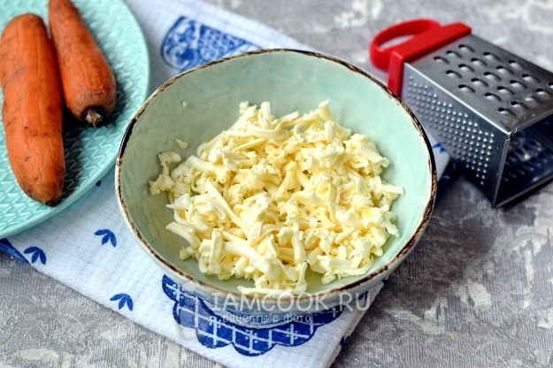 Мягкий плавленый сырок освободите от обертки, натрите на крупной терке.