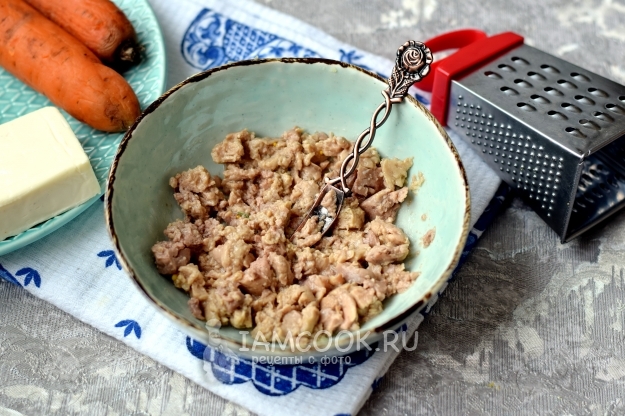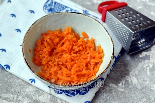 Отварную морковь после остывания освободите от верхнего слоя, измельчите аналогичным образом. Часть моркови оставьте для украшения.