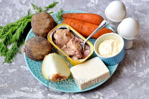 Итак, готовим салат «Новогодние часы» с печенью трески...