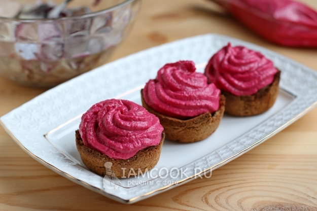 И сверху уже выдавливаем из кондитерского мешка свекольный мусс.
