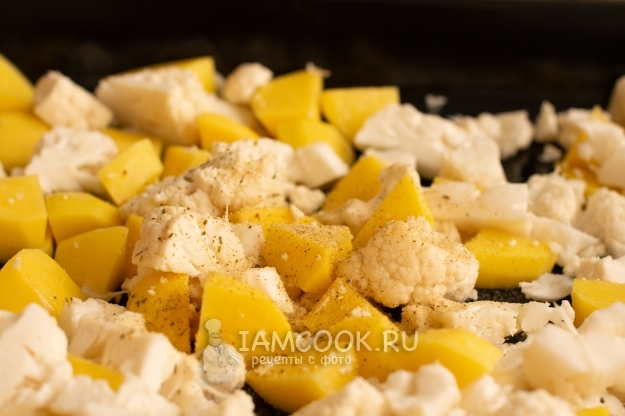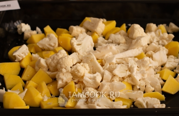 Картофель и капусту положить на противень, предварительно смазанный маслом.