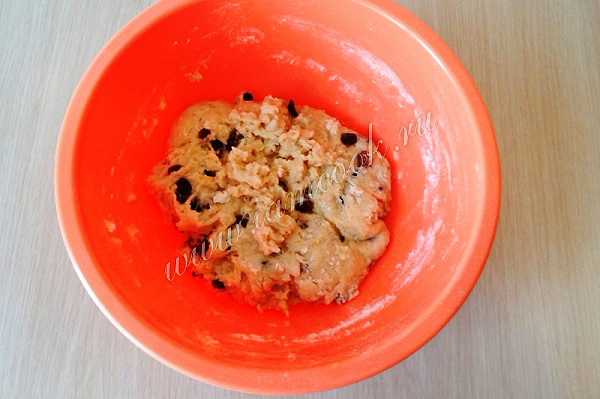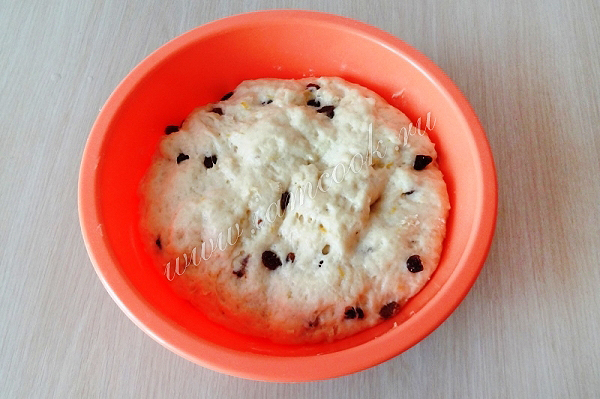 12. Добавляем в тесто изюм, ванилин и цедру лимона. Перемешиваем тесто.