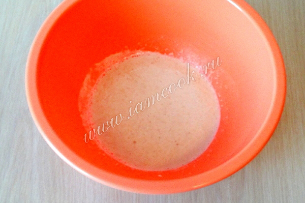 7. За это время дрожжи должны активизироваться и на поверхности должна появиться небольшая шапочка-пенка.