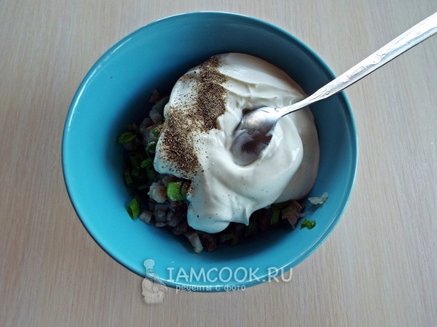 Добавить сметану и перец.