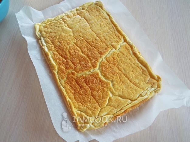 Корж вместе с бумагой положить на полотенце и дать немного остыть.
