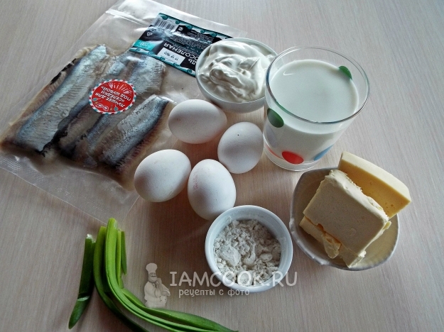 Тут все, что нам необходимо для яичного рулета с селедкой.