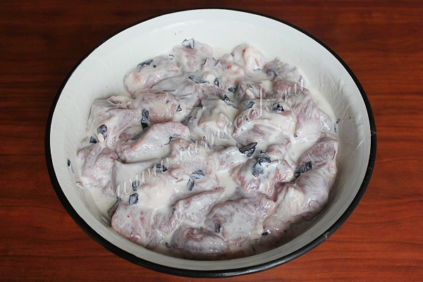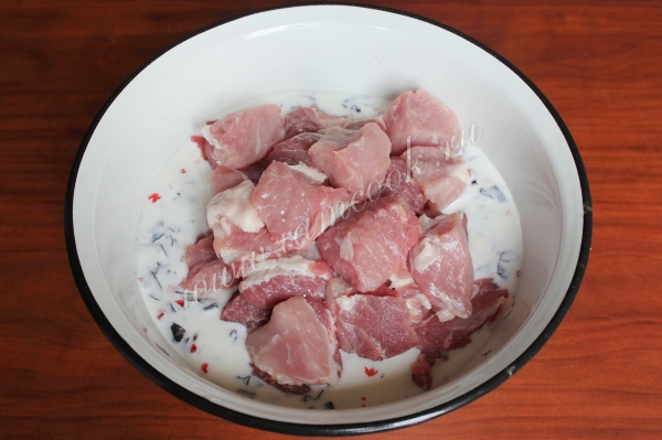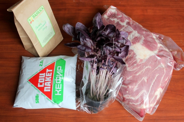 Подготовьте свинину (лучше всего подходит шея или вырезка), кефир, базилик и перец.