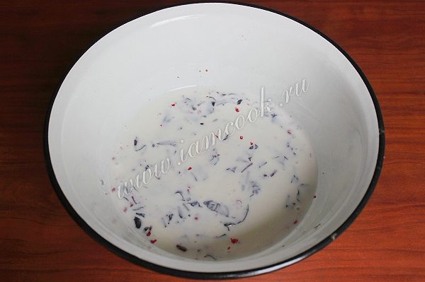 Перемешайте базилик и перцы с кефиром. Не солите!
