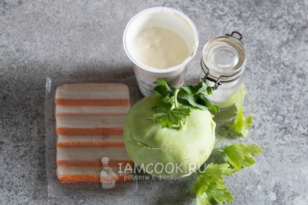 Салат из кольраби и крабовых палочек - моя попытка подрастрясти набранные за зимние праздники полтора килограмма, но не шокировать организм какой-нибудь уж совсем жёстко-диетической штукой. Короче, салат ВКУСНЫЙ. Потому что в нём и сметана, и достаточное количество животного белка из крабовых палочек. Но поскольку кольраби - это всё-таки не картошка, а крабовые палочки - это, опять же таки, не мясо, то калорий в салате из кольраби и крабовых палочек будет поменьше, чем во всех тех блюдах, которыми обычно принято праздновать зимой.