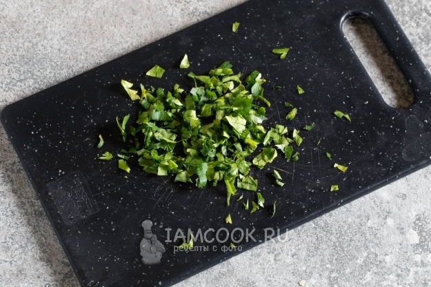 Салату можно дать в таком виде промариноваться, а можно есть сразу. В любом случае, перед употреблением салата режем петрушку. Почему перед употреблением, а не перед маринованием? А у неё в свеженарезанном виде другой вкус - более свежий. Сейчас зима и хочется чего-нибудь зелёненького.