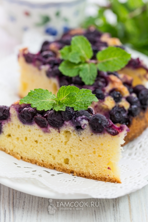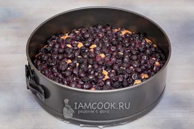 Выпекать пирог с замороженной черникой при 180 градусах 40-50 минут.