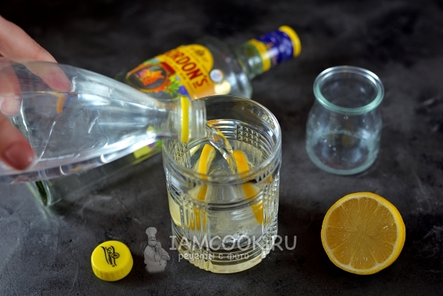 Дальше влейте в бокал джин.
