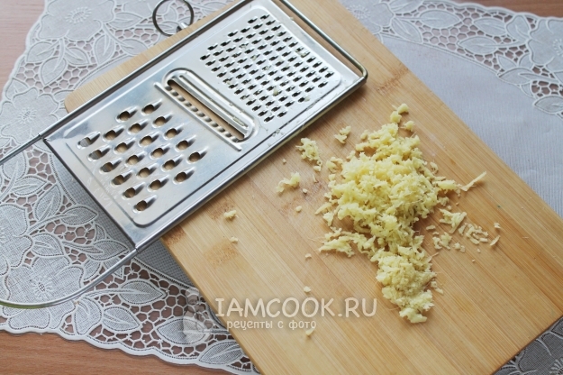 А пока она варится, приготовьте соус. Для этого на мелкой терке натрите очищенный корень имбиря.
