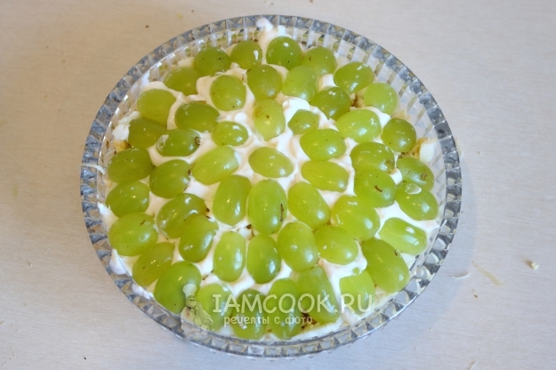 Виноград промываем и разрезаем пополам каждую ягодку.