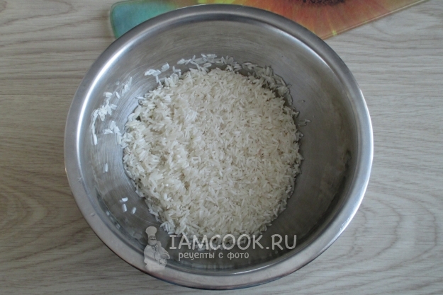 Рис промойте в нескольких водах в миске или сите.