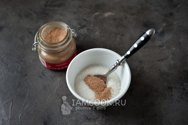 Добавьте в сахар неполную чайную ложечку молотой корицы хорошего качества. Хорошенько их перемешайте.