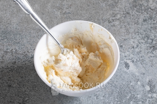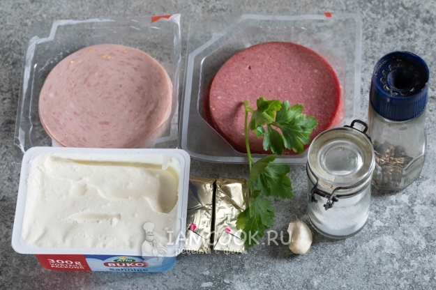 Другую шайбу колбасы намазываем сырной смесью (где-то чайная ложка).