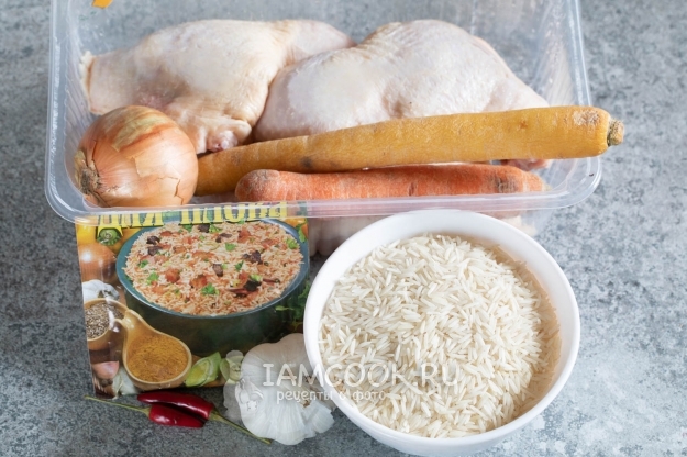 По времени приготовления курятина - это мясо, которое достигает готовности быстро. Соответственно, рецепт плова из окорочков предназначен для тех случаев, когда хозяйка торопится и ей некогда. Он требует где-то пятнадцати минут активного стояния у плиты, всё остальное время рис варится и парится сам.