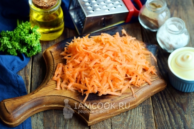 С моркови снимите верхний слой, натрите на терке с крупными дырочками.