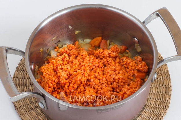 Варите на малом огне 10-15 минут - до полной готовности чечевицы.