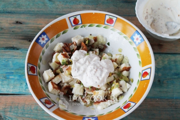 Приготовим еще один салат с омлетом. На этот раз в салат добавим жареные лисички. Салат можно подавать как в теплом, так и в охлажденном варианте. Получается он сытным, можно вполне заменить таким салатом второе блюдо на обед или полноценный перекус.