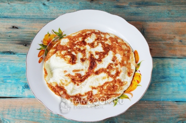 Выльем омлетную массу на разогретую с маслом сковороду и пожарим омлет как в предыдущем рецепте.