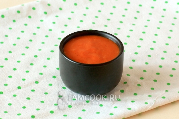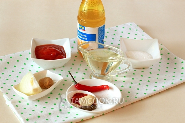 Добавьте растительное масло и кетчуп. Лимонный сок оставьте напоследок, им будем регулировать вкус.