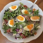 Подготовьте все необходимые продукты по списку. Салат, петрушку и помидоры помойте, обсушите насухо. Лук почистите, помойте, обсушите. Сразу же поставьте вариться куриное яйцо. Поскольку мы будем варить его не дольше 5 минут, то есть чтобы желток был жидким, то лучше взять яйцо домашней курицы. Установите таймер сразу же, как только пойдут первые пузырьки закипания воды.
