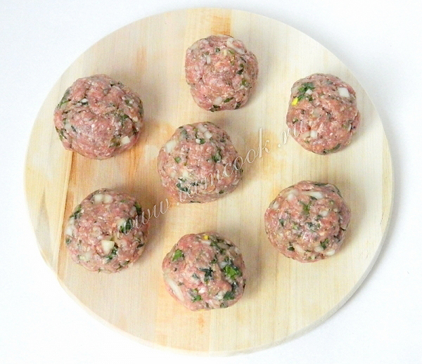 Мясной шарик расплескиваем и оборачиваем вокруг шпажки.