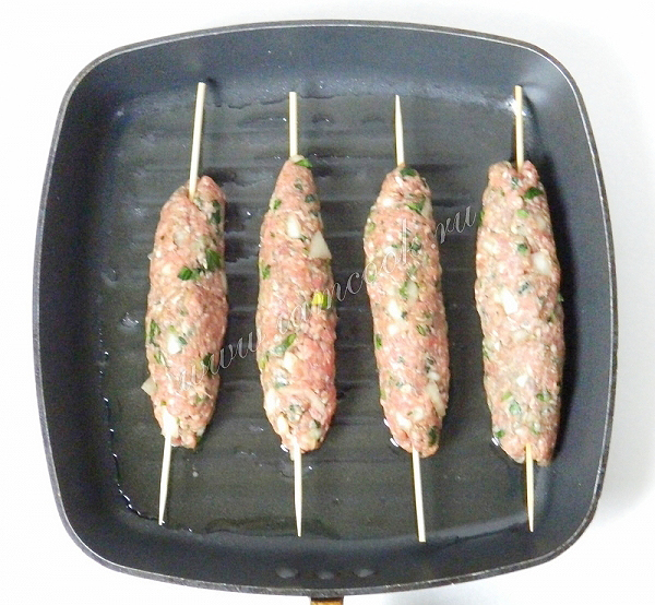 Хорошо прижимаем руками и формируем вот такие колбаски на шпажках.