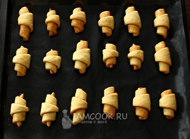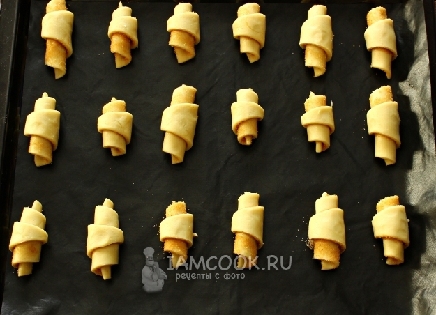 Выкладываем сформированные рогалики на противень, застеленный ковриком или бумагой для выпечки.