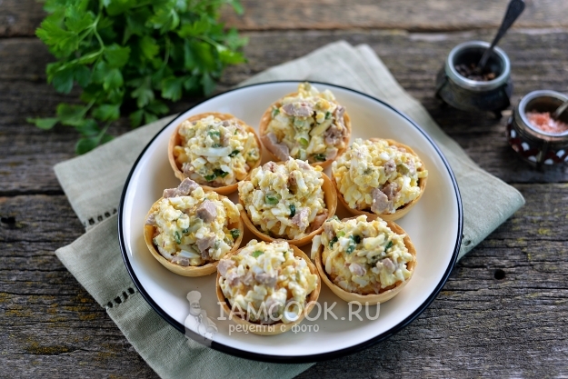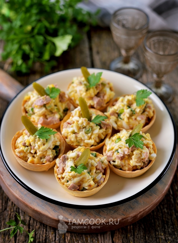 Тарталетки с печенью трески, плавленым сыром и корнишонами готовы.