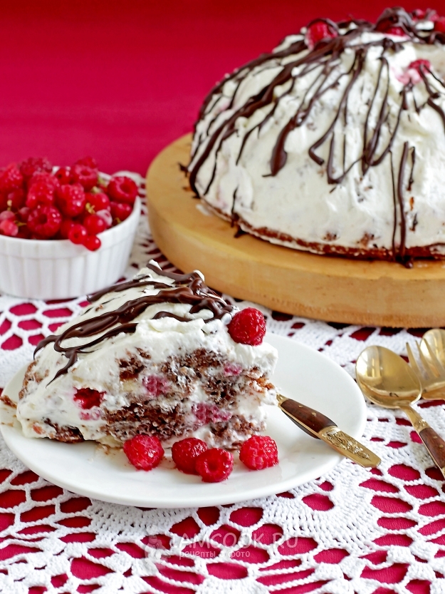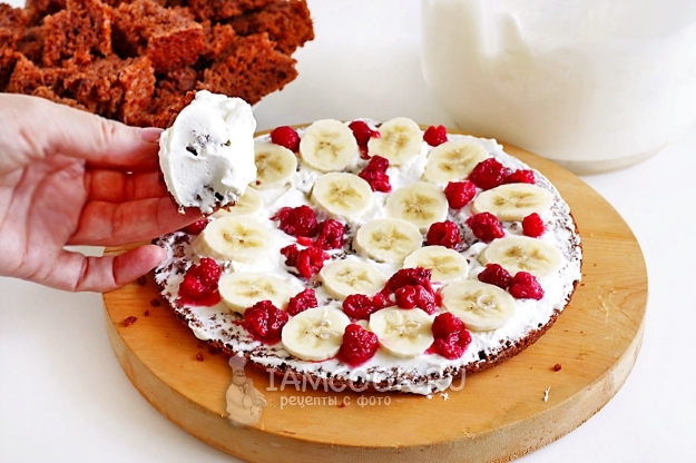 Торт «Панчо» с малиной и бананами готов. Можно дегустировать.