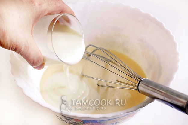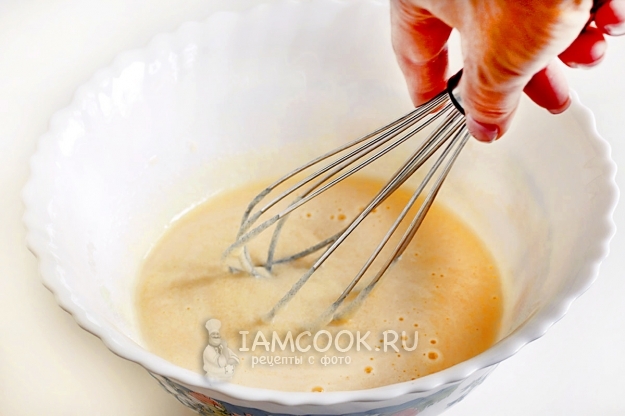 Яйцо растереть с сахаром добела. Это удобно делать ручным венчиком.
