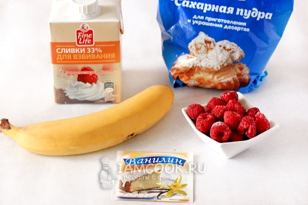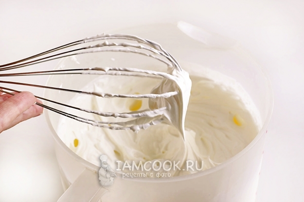 Сливки взбить с добавлением сахарной пудры и ванили до мягких пиков. Сладость крема можно регулировать по собственному вкусу.